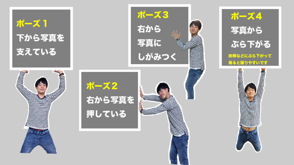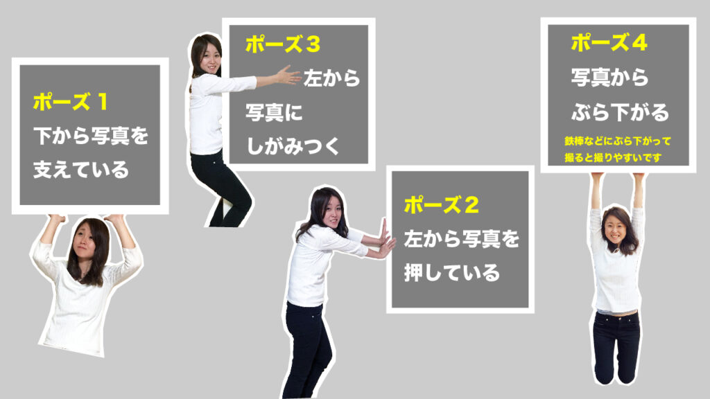 下記のお写真のようなポーズだけを撮影してお送りください。